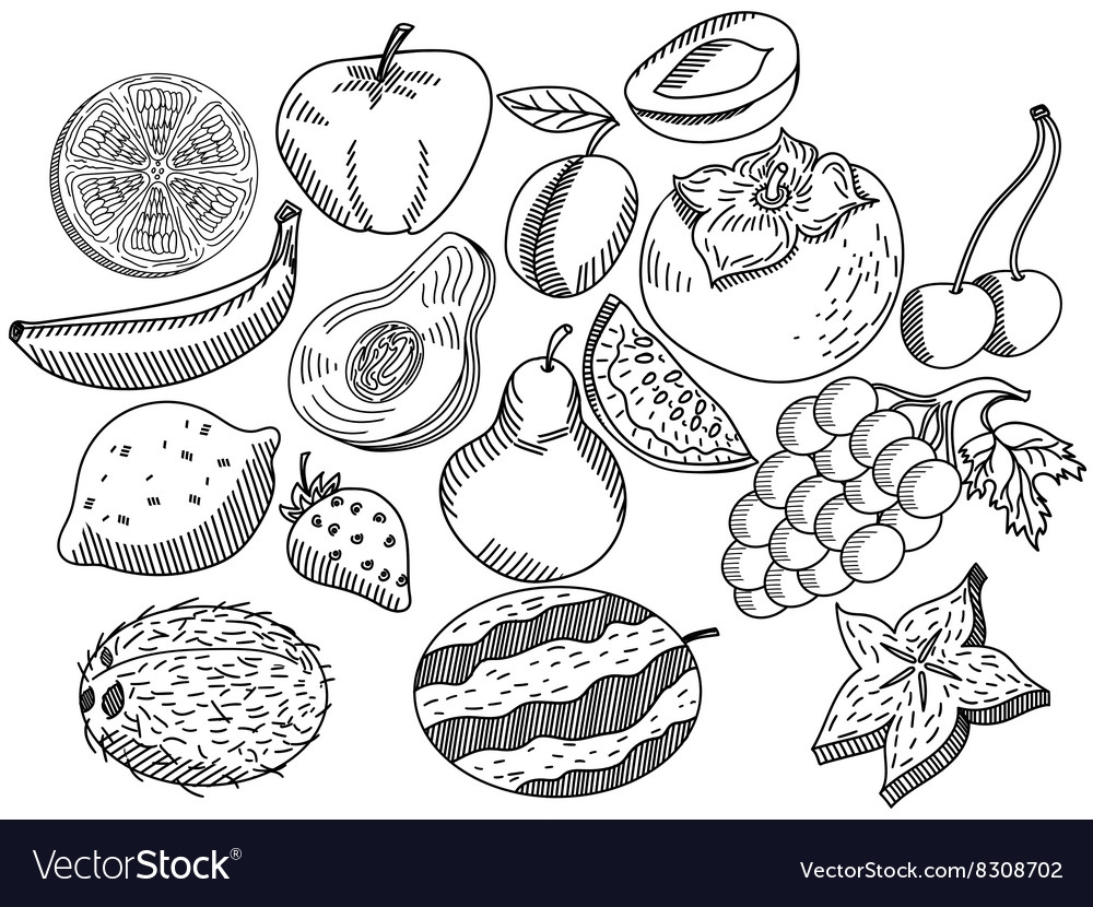 Fruits Coloring Book For Adults Royalty Free Vector Image