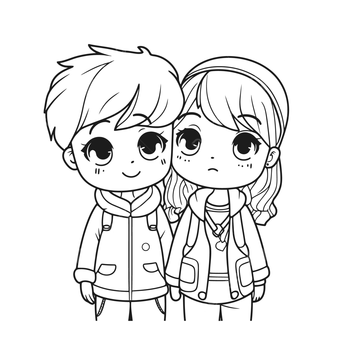 Couple Of Cute Baby Boy And Girl In White And Black Coloring Pages For Kids Outline Sketch Drawing Vector Baby Drawing Wing Drawing Girl Drawing PNG And Vector With Transparent Background For