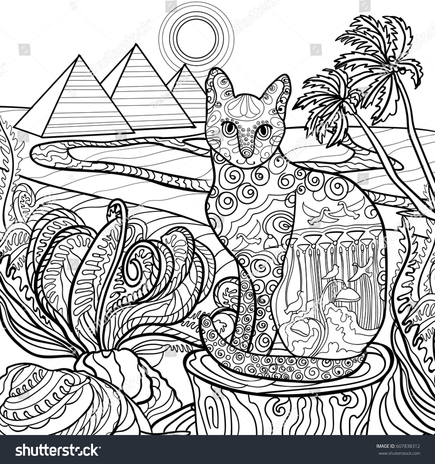 Outline Cat Coloring Page Design Egypt Stock Vector Royalty Free 607838312 Shutterstock