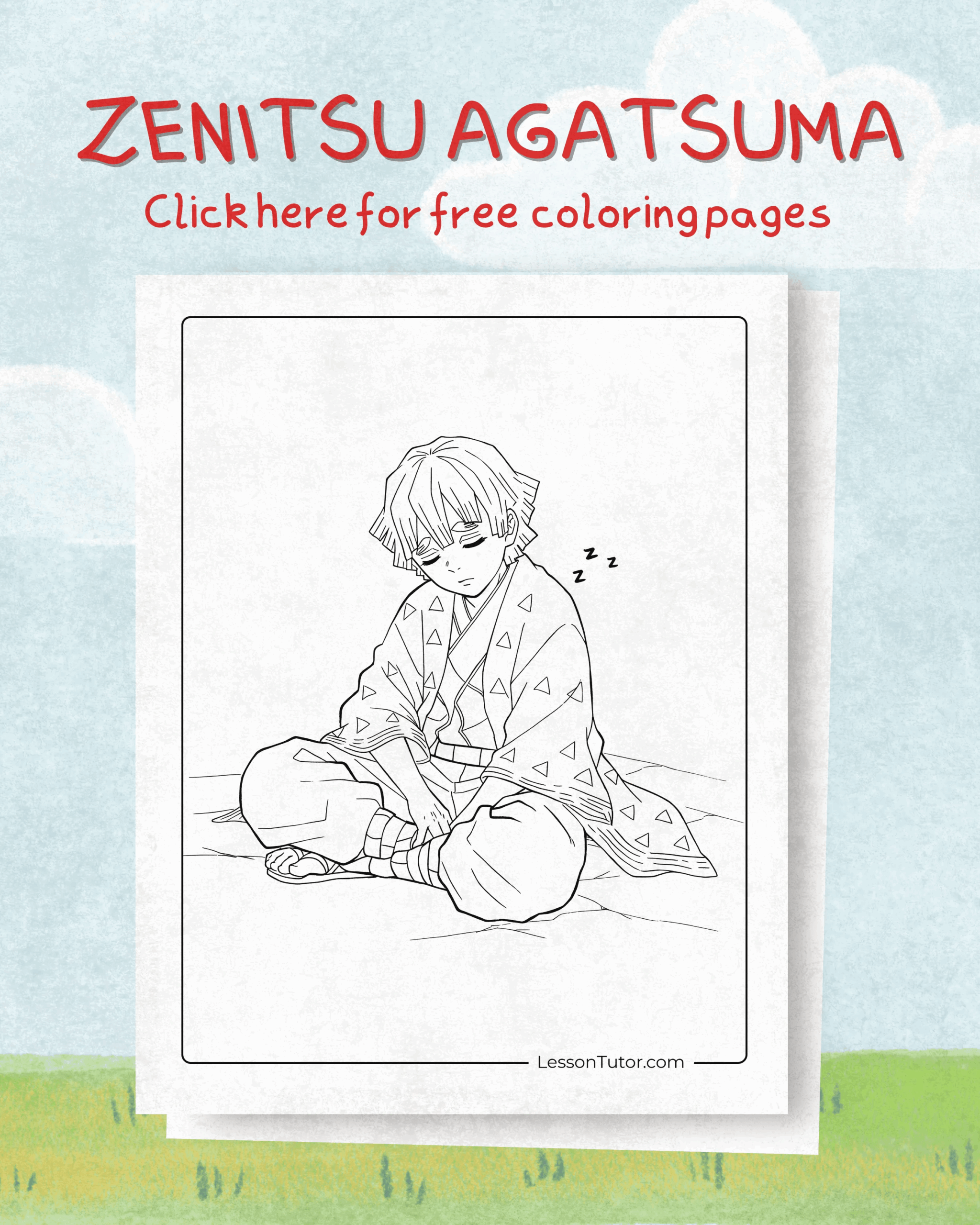 Zenitsu Agatsuma Coloring Book Page Worksheet