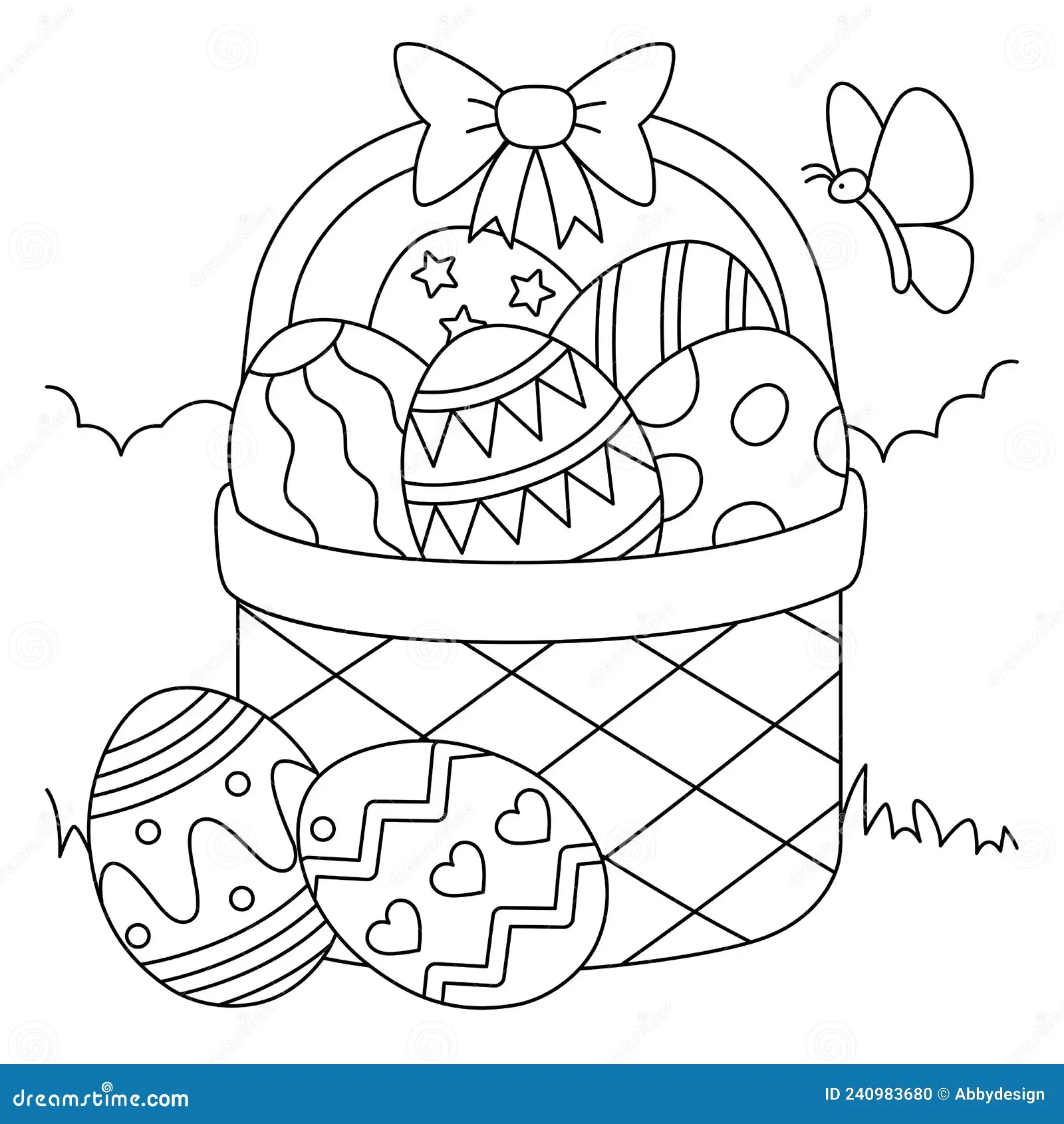 Easter Basket Coloring Page For Kids Stock Vector Illustration Of Full Outline 240983680