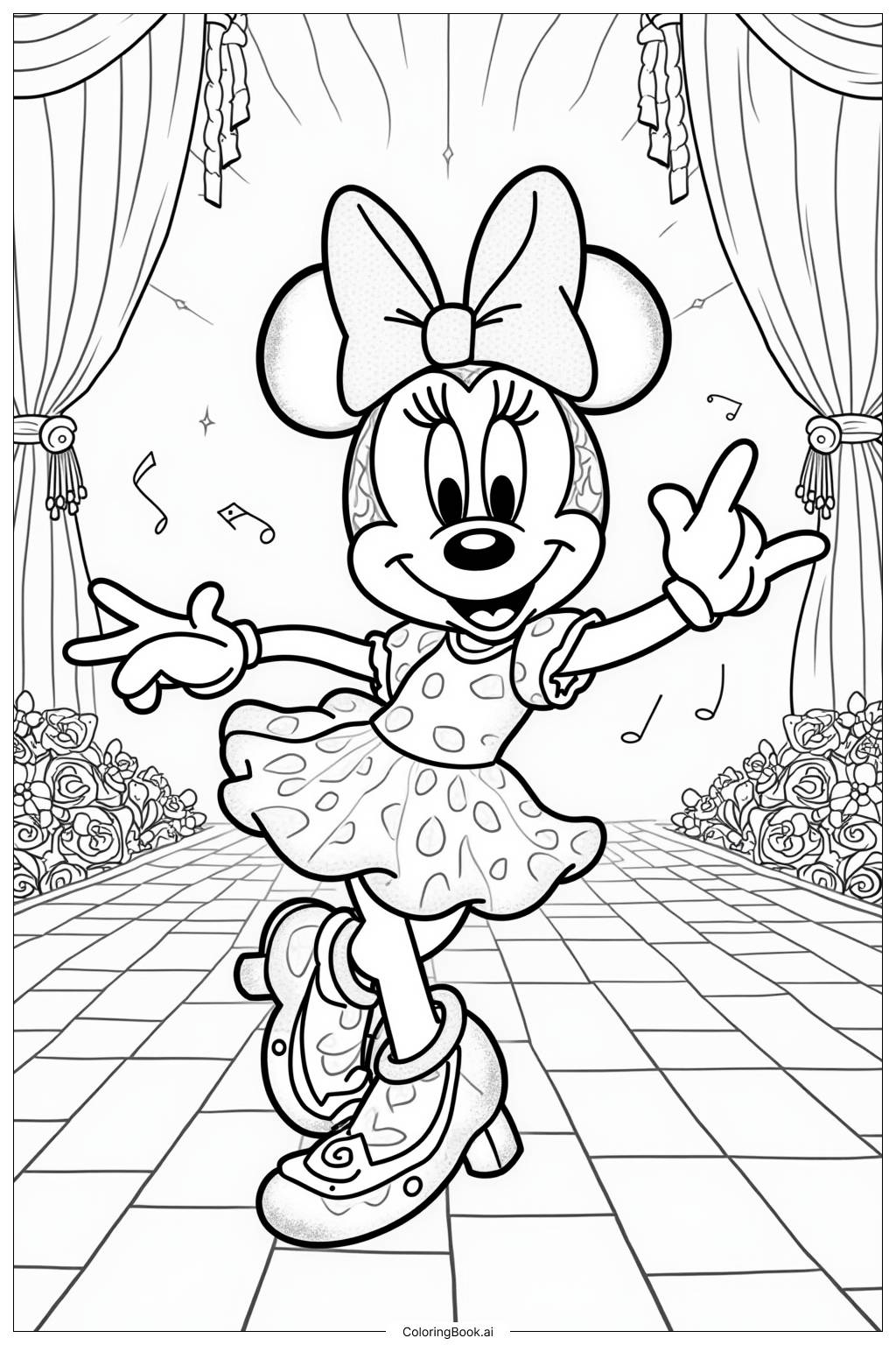 Minnie Mouse Dancing With Glittering Shoes Coloring Page Free PDF PNG Printable