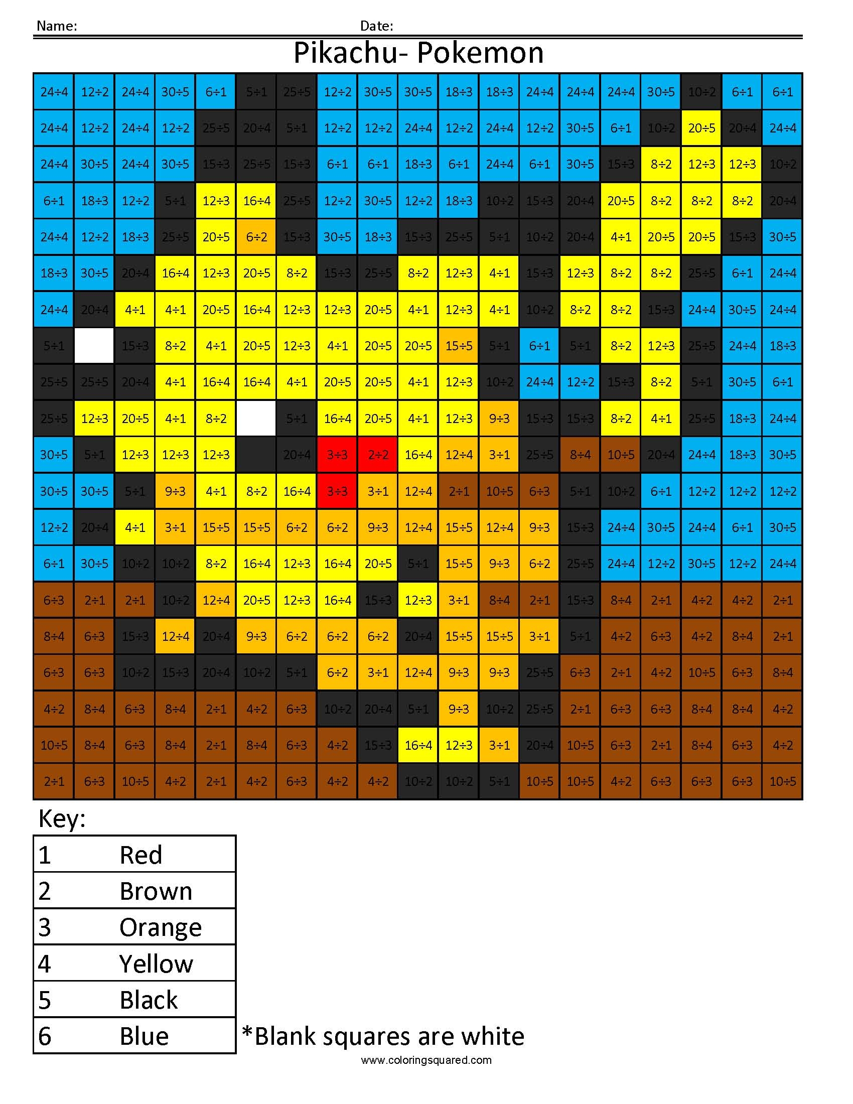 Pikachu Basic Division Coloring Squared