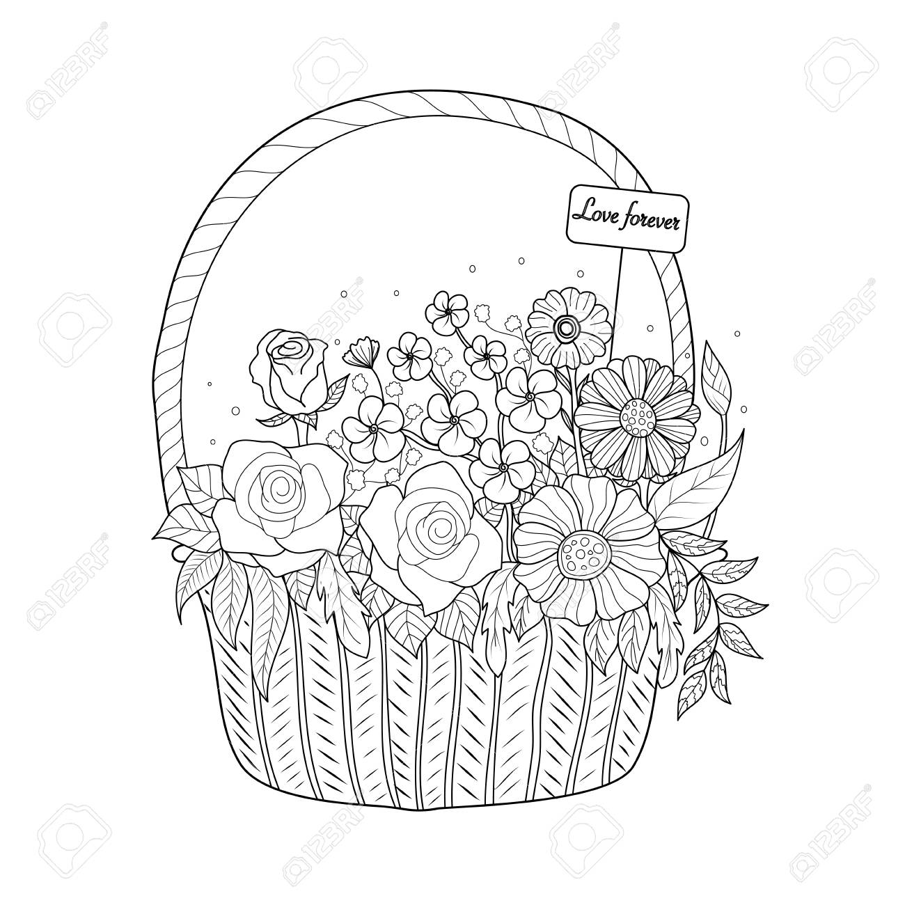 Coloring Book Page Of Flower Basket For Adult Valentine s Day Vector Illustration Hand Drawn Doodle Style Royalty Free SVG Cliparts Vectors And Stock Illustration Image 100204127